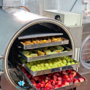 Gần 28kg nho Autumn Crisp Mỹ tươi trải qua 36 tiếng bằng phương pháp SẤY THĂNG HOA, 1 công nghệ sấy tiên tiến nhất hiện nay (sấy lạnh bằng nhiệt độ âm sâu) mới cho ra được 5kg nho sấy thăng hoa thành phẩm.