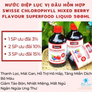 Nước Diệp Lục Vị Dâu Hỗn Hợp Swisse Chlorophyll Mixed Berry Flavour Superfood Liquid 500ml Úc – chai