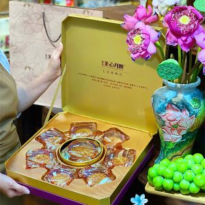 ❤️ Hộp 8 bánh gồm 7 bánh trung thu nhỏ với 7 phần nhân khác nhau & 1 bánh lớn với 3 trứng tròn đầy như ánh trăng viên mãn.