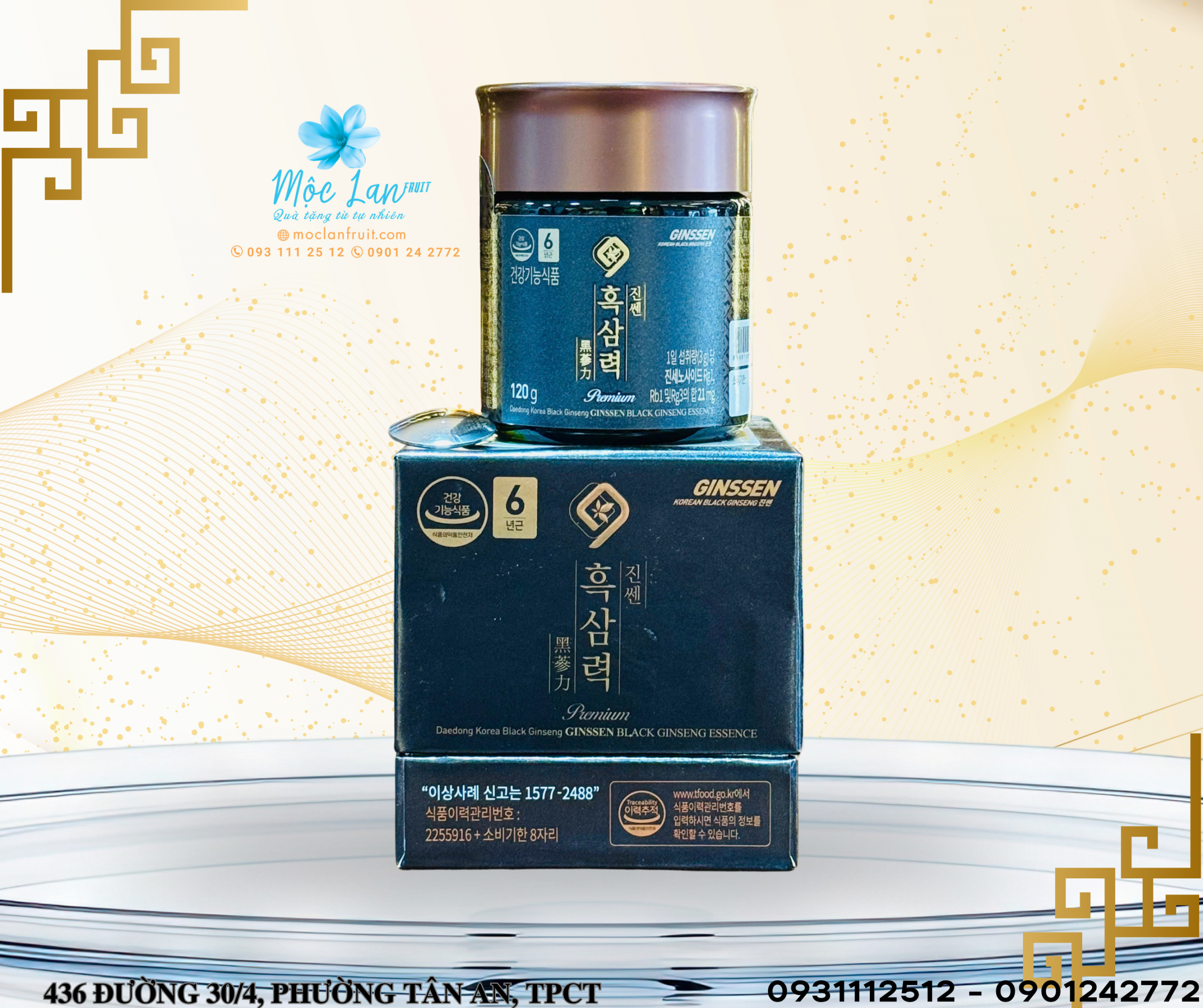 – Thành phần chính: Cao hắc sâm cô đặc (Ginsenside Rg1, Rb1 và Rg3 7mg/g) chiếm 100%. Tỷ lệ pha trộn: Rễ chính: 70%, Rễ phụ: 30%.